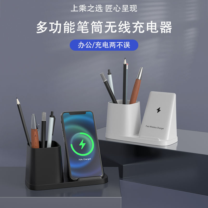工厂批发创意笔筒无线充电器桌面收纳盒手机无线充电立式支架礼品