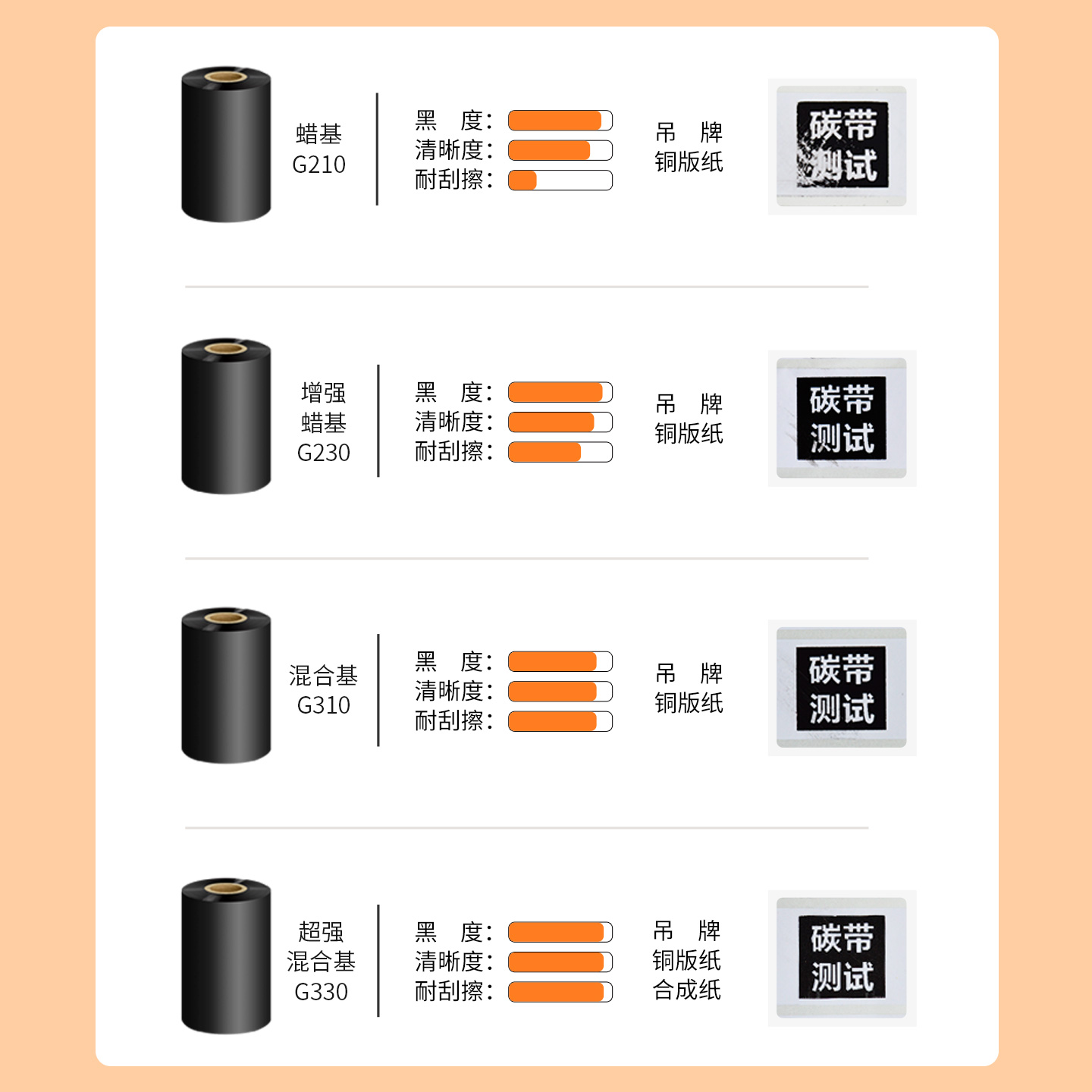 | 颜色 | 【G230增强蜡基】60*300米(清晰黑度高防刮) | 颜色 | 【增强蜡基碳带】70*300米(清晰黑度高防刮) |