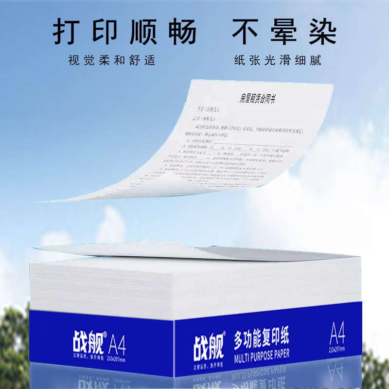战舰A4复印纸70g80g办公打印纸500张整箱双面激光静电复印纸原生