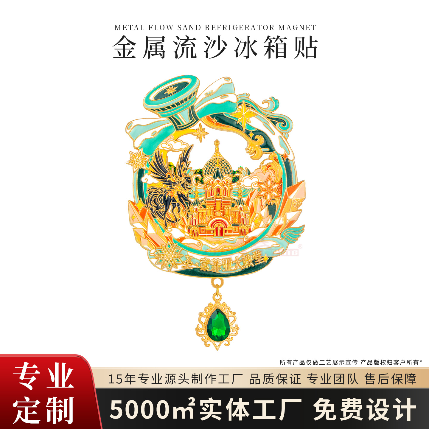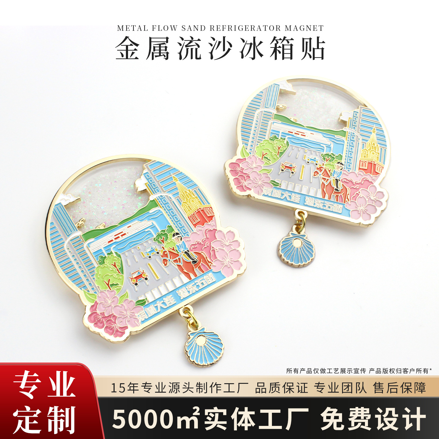 定制金属流沙冰箱贴烤漆UV浮雕景区城市博物馆文创旅游冰箱贴定制