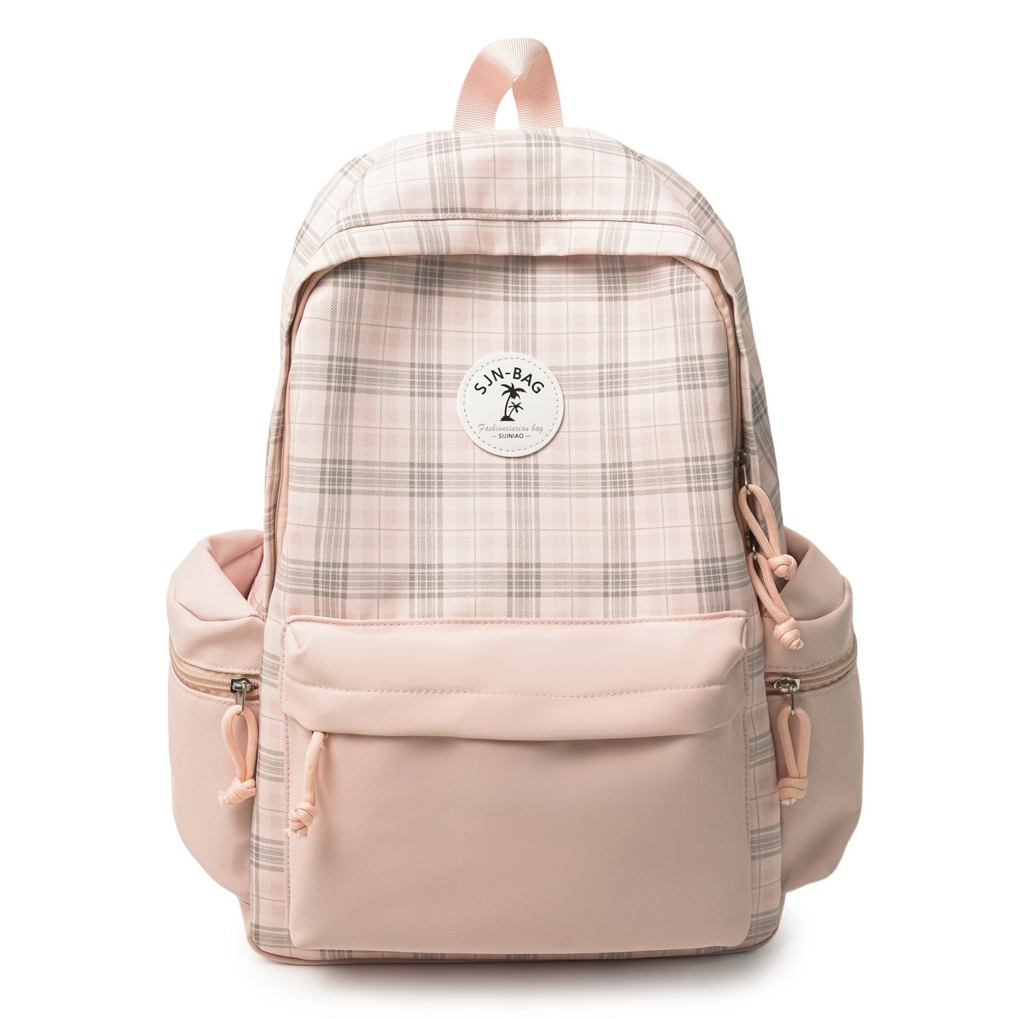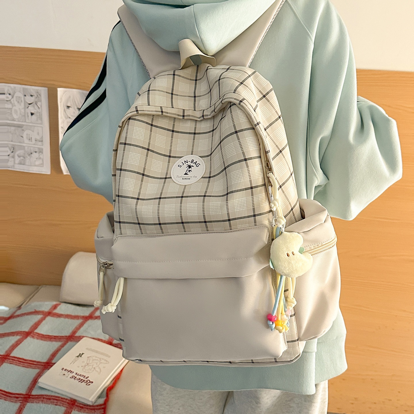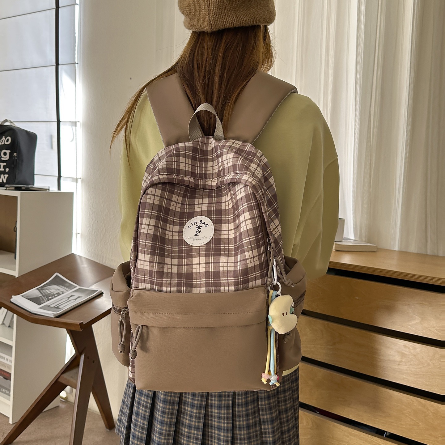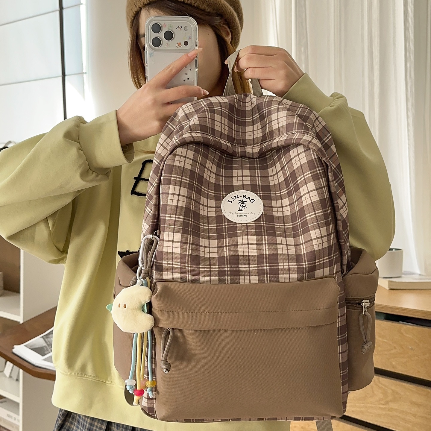 日系ins风百搭格子书包女 初中女生高中生学生双肩包休闲旅行背包