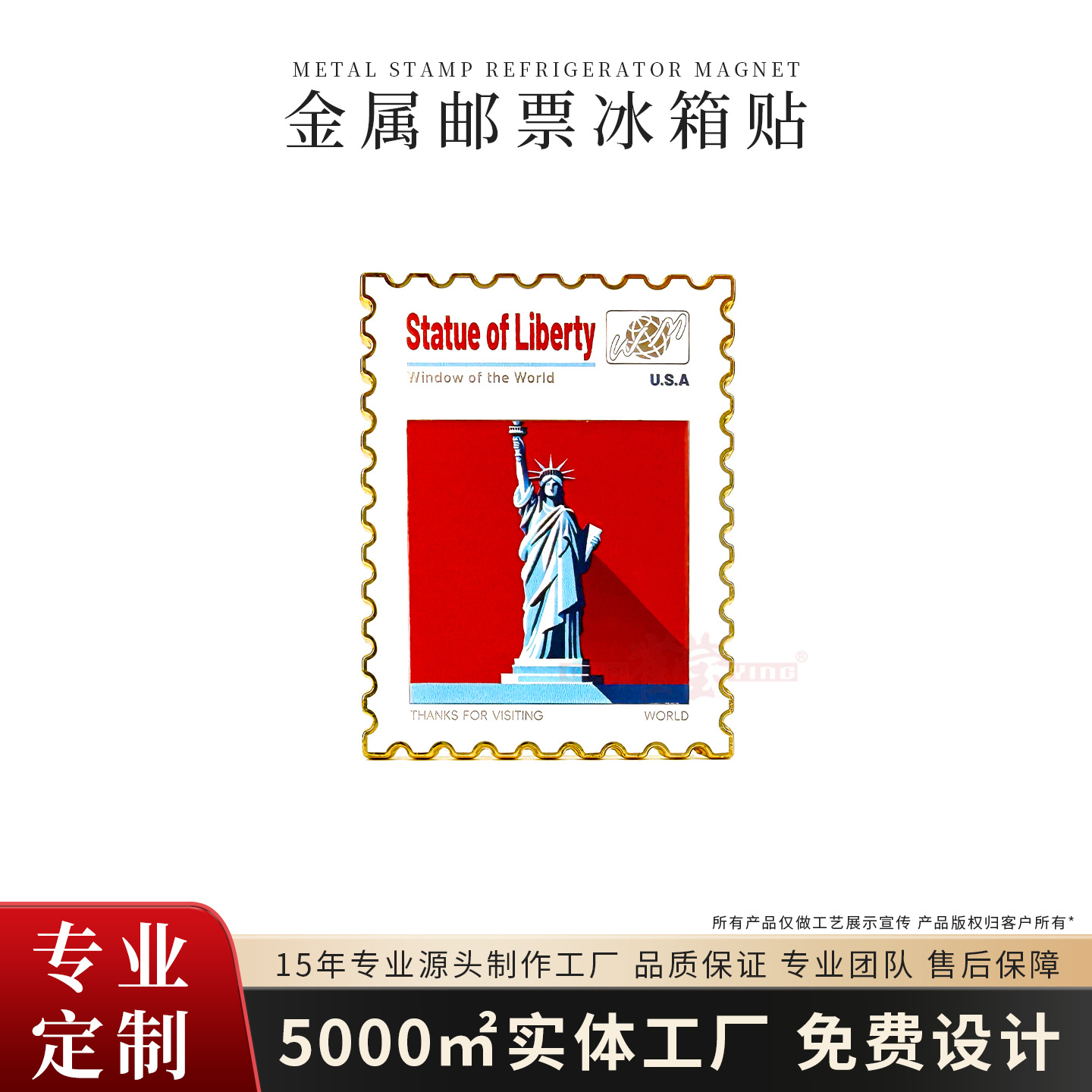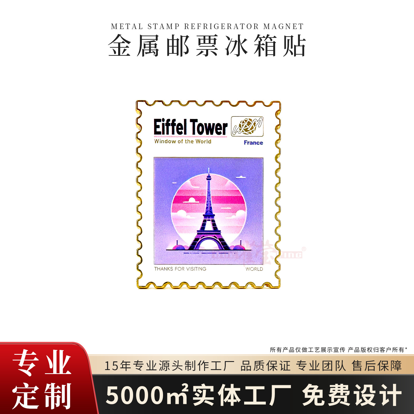 金属烤漆珐琅创意邮票冰箱贴磁吸文创冰箱贴旅游城市创意礼品