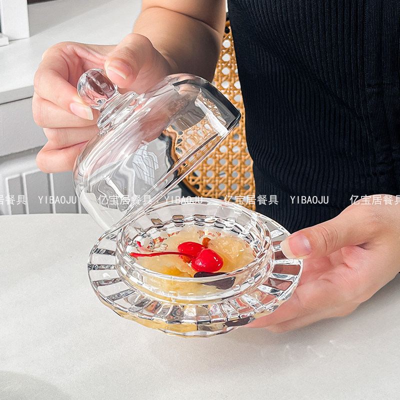 中式燕窝碗银耳盅玻璃带盖透明精致高级家用水果点心甜品碗小汤盅