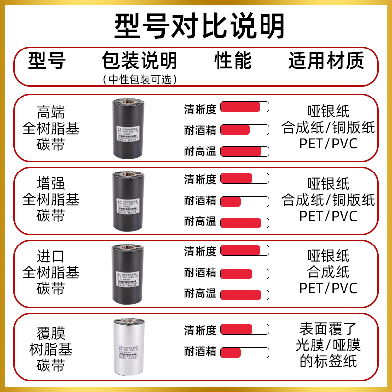 | 适用对象 | 标签打印机 | 碳带类型 | 树脂基 |