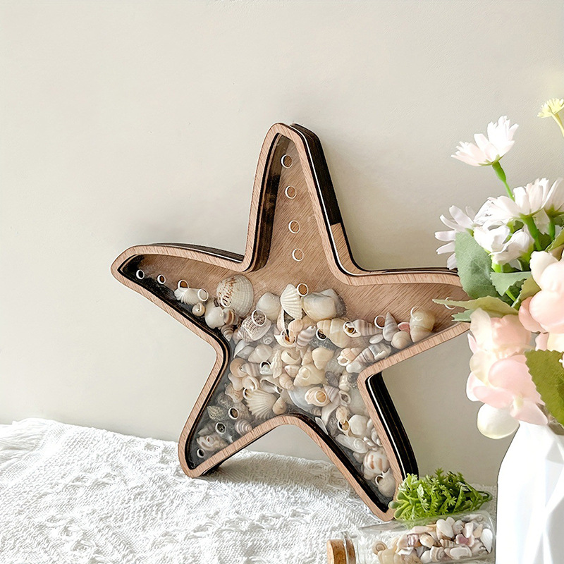 跨境新款木质工艺品 个性创意木质桌面展示支架 海星摆件展示盒