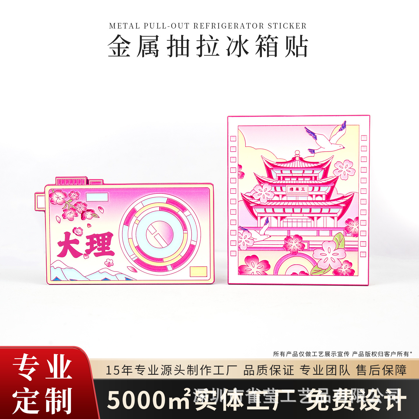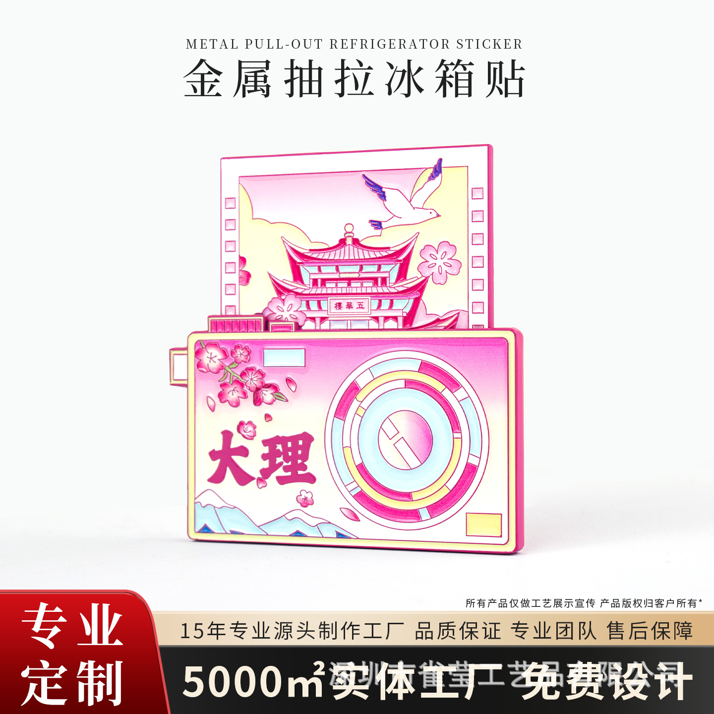 金属烤漆抽拉冰箱贴定制景区博物馆文创相机可抽拉创意冰箱贴定制