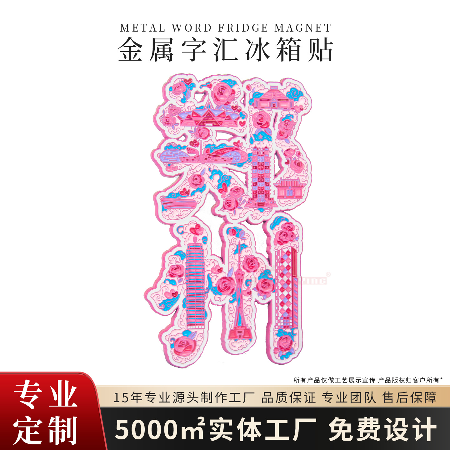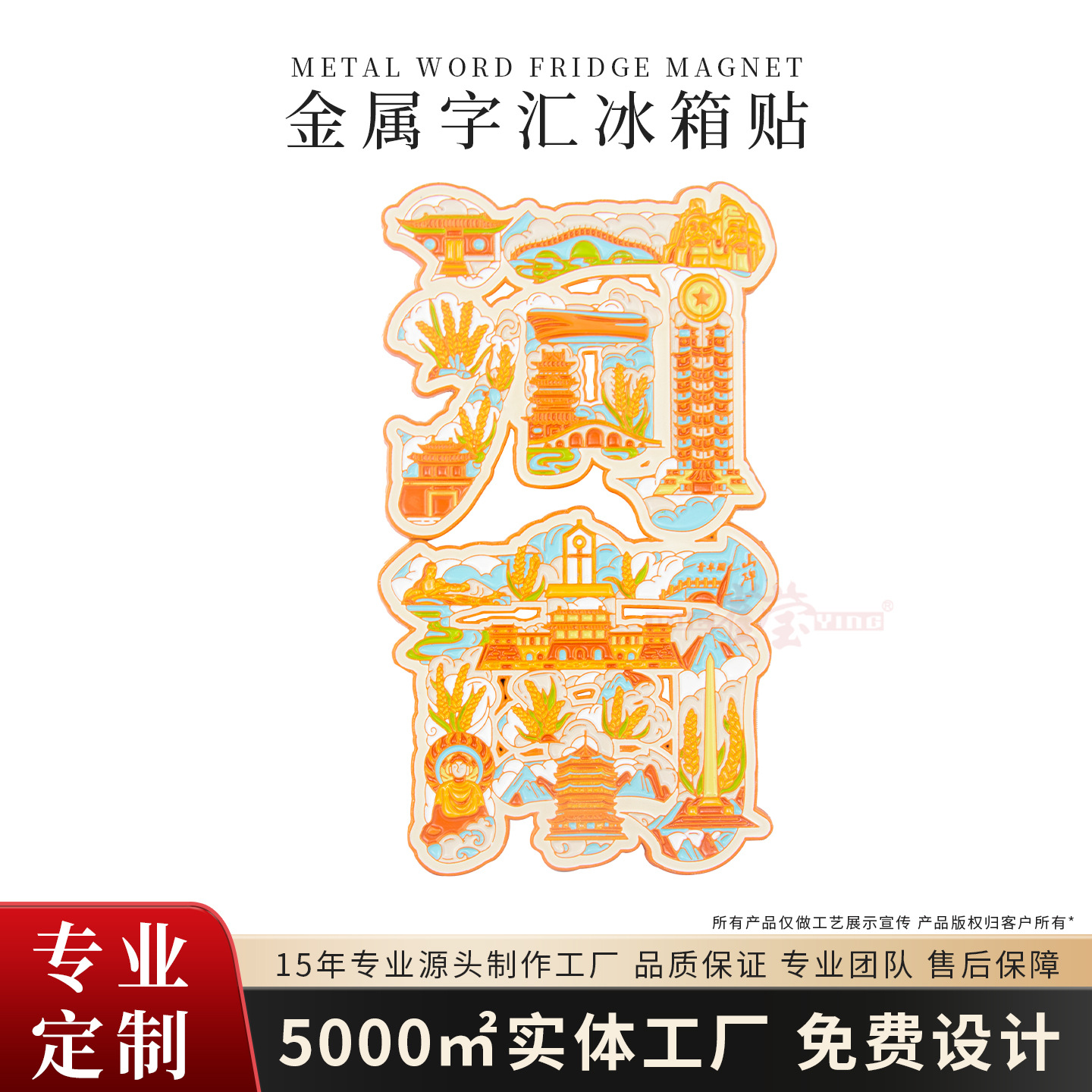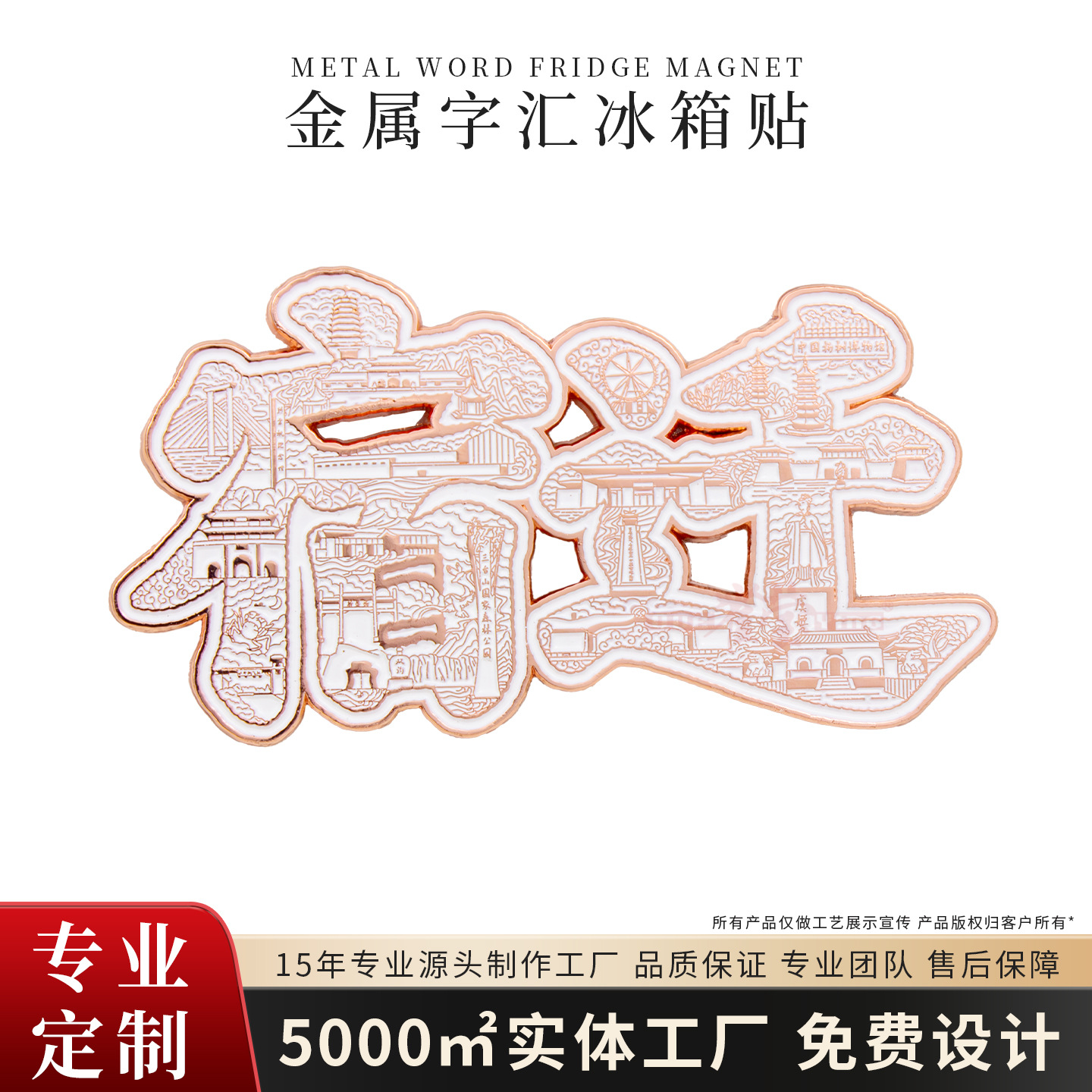 城市创意字绘文字金属冰箱贴定制旅游景区博物馆文创礼品金属磁吸
