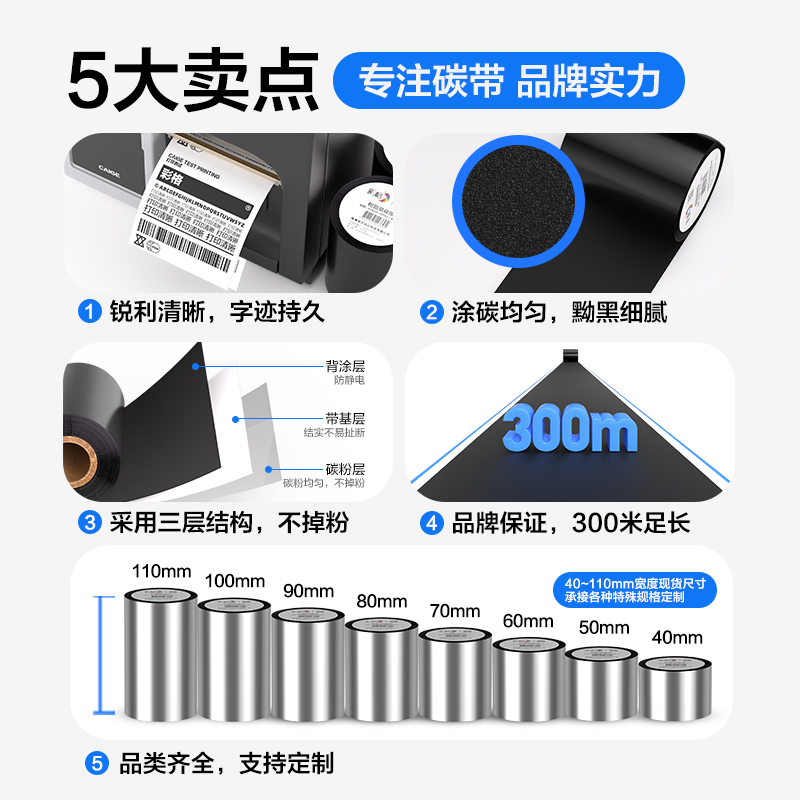 | 颜色 | 【蜡基碳带】100mm*300m | 颜色 | 【蜡基碳带】90mm*300m |