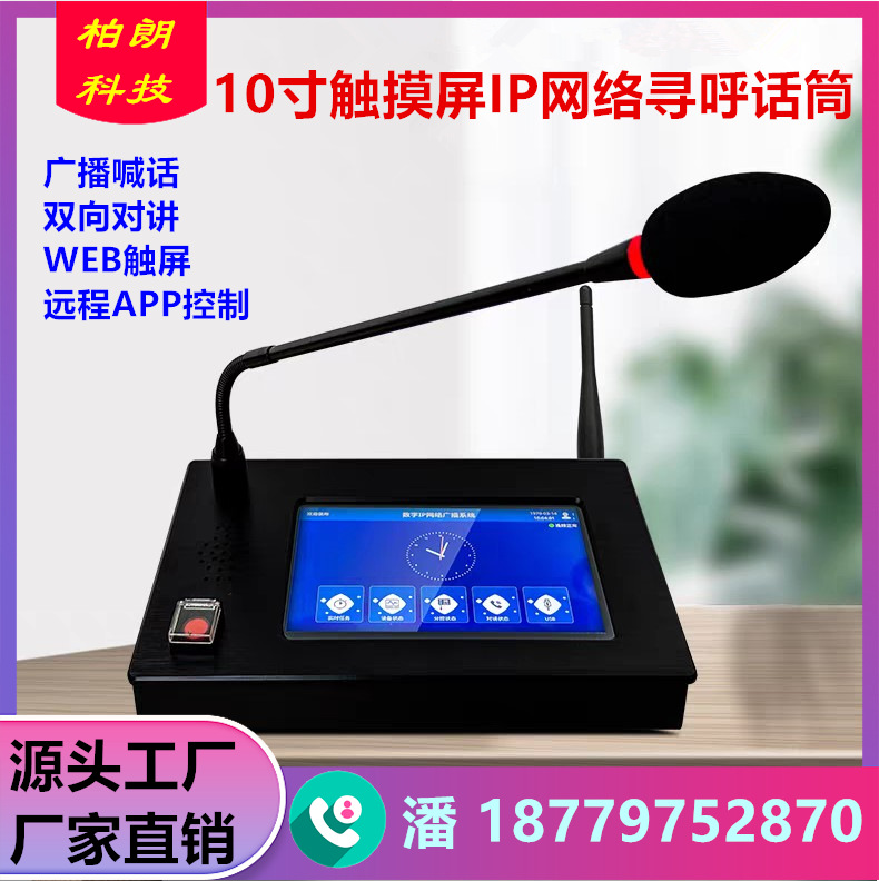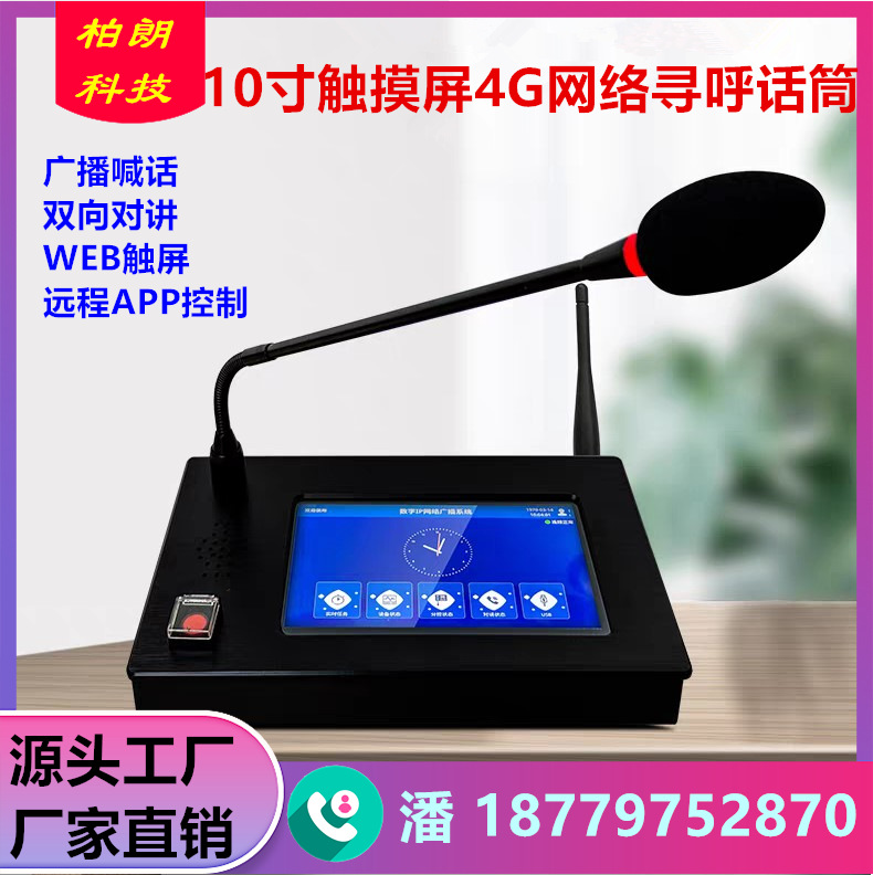 4GIP网络触摸屏报警主控台寻呼话筒远程APP控制双向对讲呼叫主机