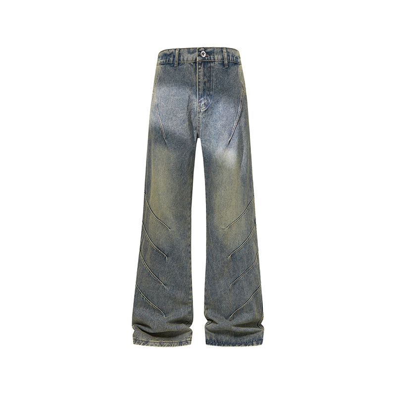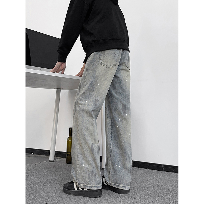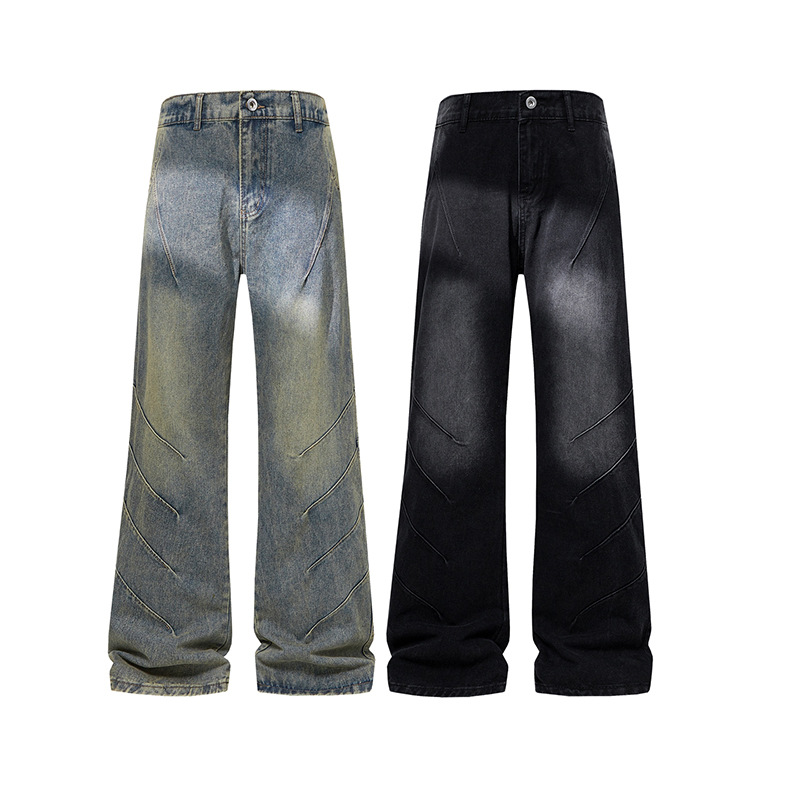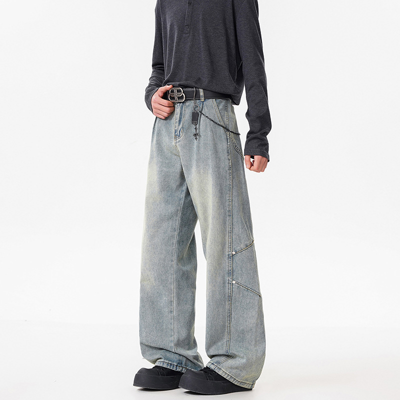 美式高街牛仔裤男宽松直筒男装春季新款拼接显瘦百搭上衣男士裤子