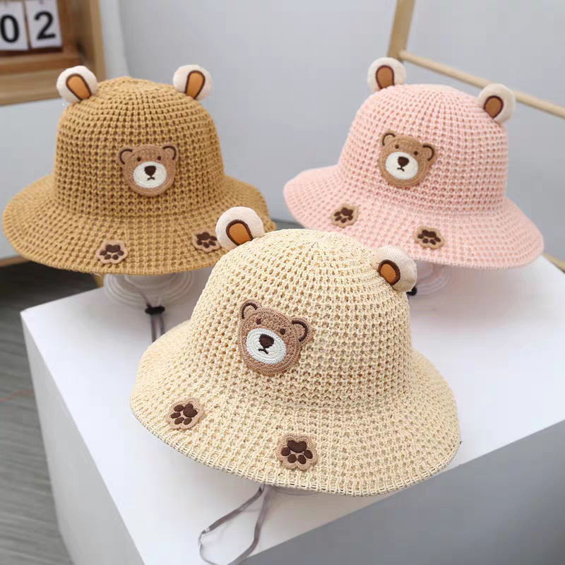 | 颜色 | 儿童小熊草帽--粉色 | 颜色 | 儿童小熊草帽--黄色 |