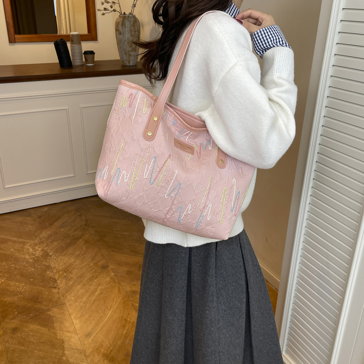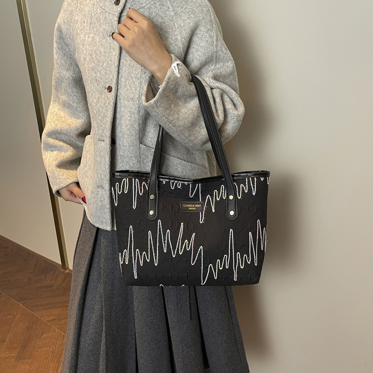 简约大包可爱流行大容量拉链包包女2026新款质感通勤托特包单肩包