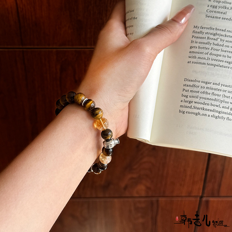 韩茜儿银匠天然黄塔晶黄虎眼时尚高级百搭手串手链招财SC0194