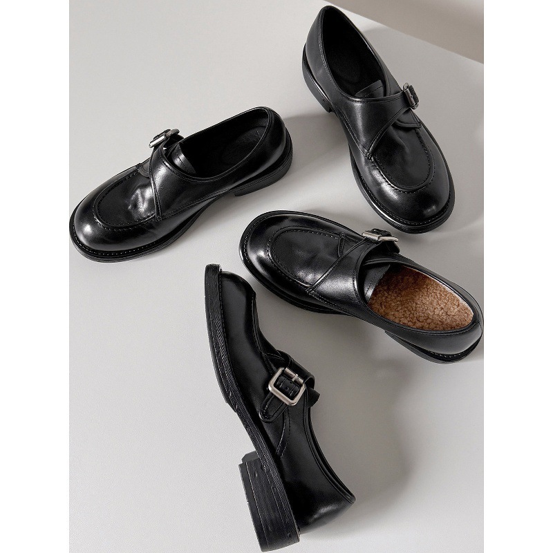 软羊皮~学院风乐福鞋女显瘦气质百搭英伦复古真皮粗跟单鞋小皮鞋