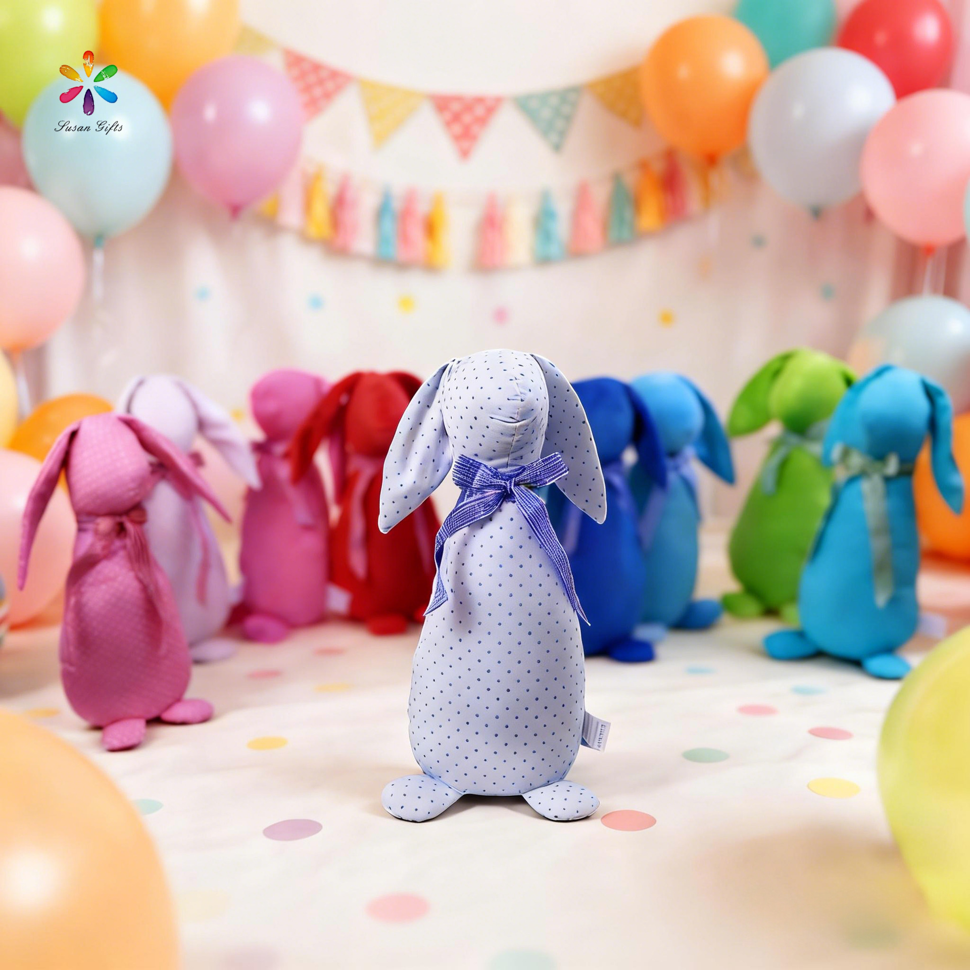 跨境新品复活节兔子玩偶蝴蝶结站立兔子公仔可爱安抚玩偶陪睡公仔