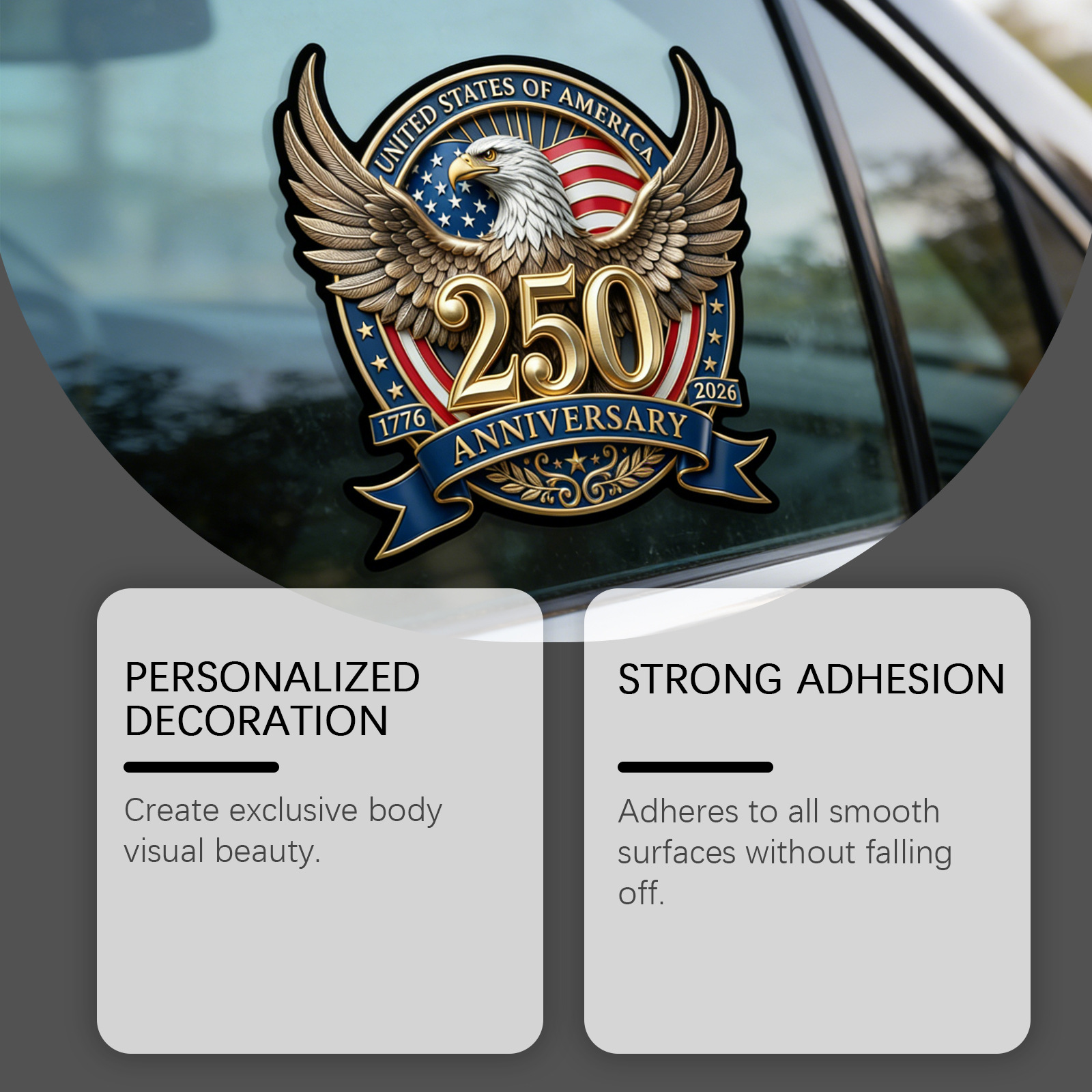 汽车贴窗纸 美式复古250周年鹰旗贴花个性创意便携车窗装饰贴纸