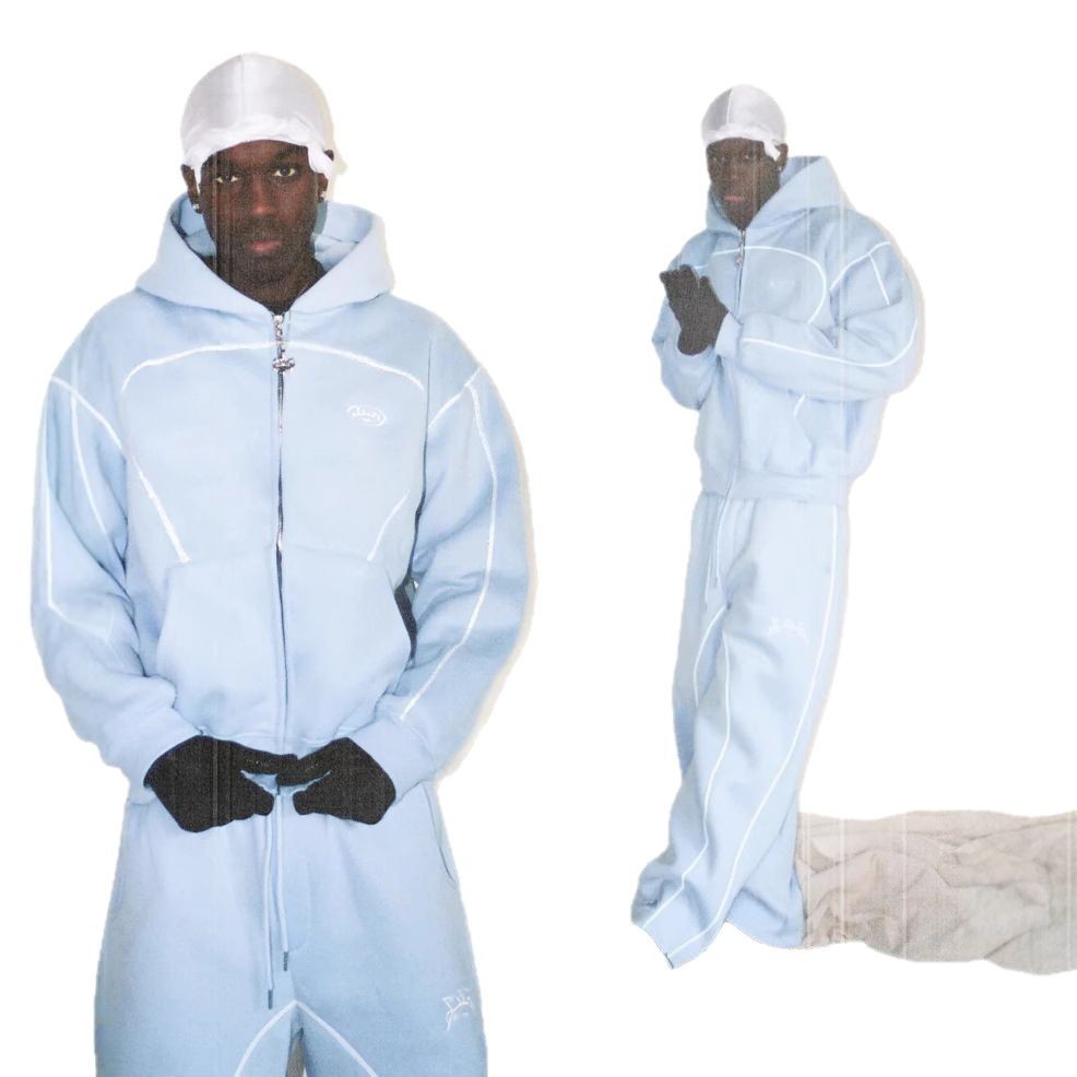 | 颜色 | 浅蓝色拉链卫衣 | 颜色 | 黑色套装 |
