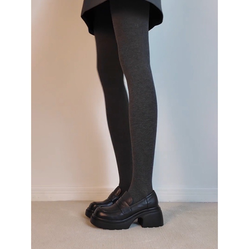 羊皮版~真皮厚底松糕一脚蹬乐福鞋女复古英伦黑色百搭小皮鞋单鞋