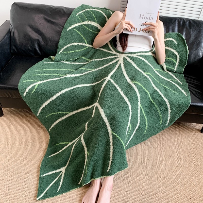 跨境针织毯午睡沙发盖毯露营毯子毛毯半边绒树叶毯卧室厂家直销