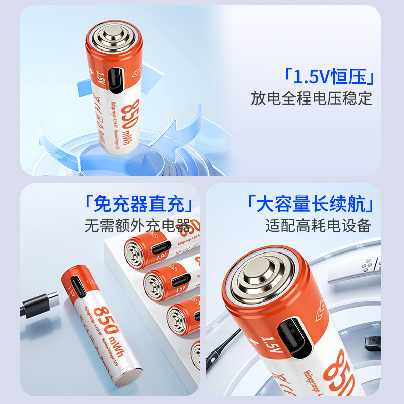 1.5V恒压锂电池话筒门锁AA/AAA接口遥控电池5号7号USB充电锂电池