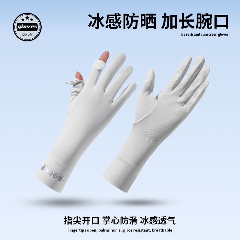 薄款防紫外线手套女夏季电动车骑行开车防滑翻盖冰丝凉感手套防晒