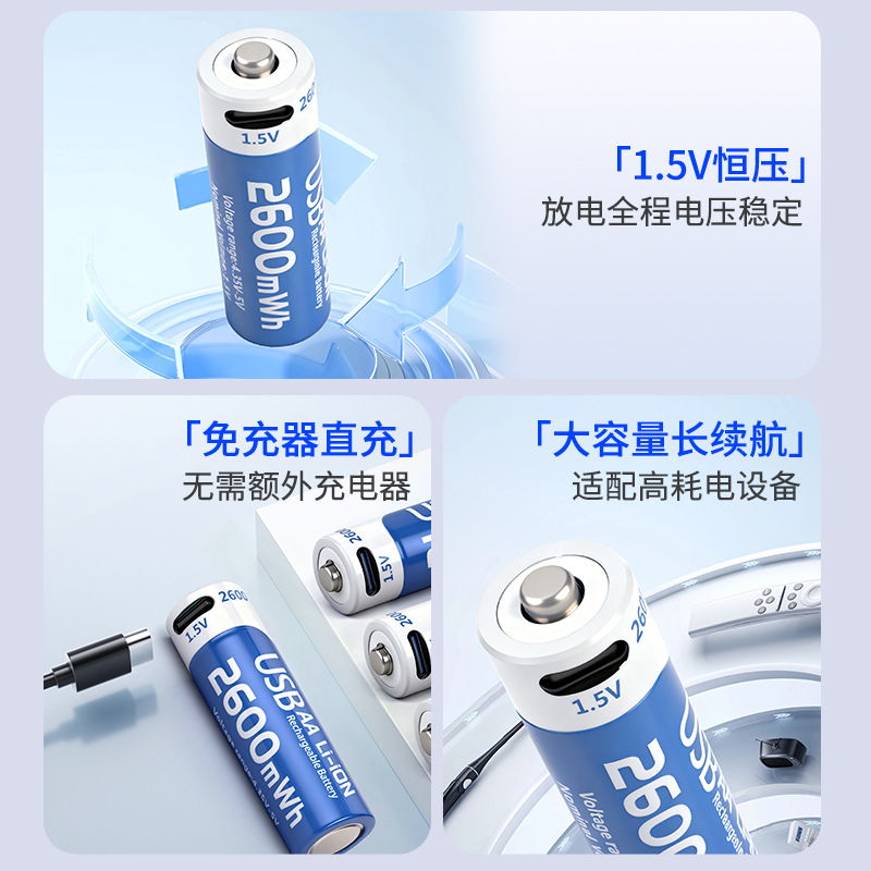 usb充电电池5号AA1.5V恒压智能锁遥控锂电池2600mWh锂离子电池