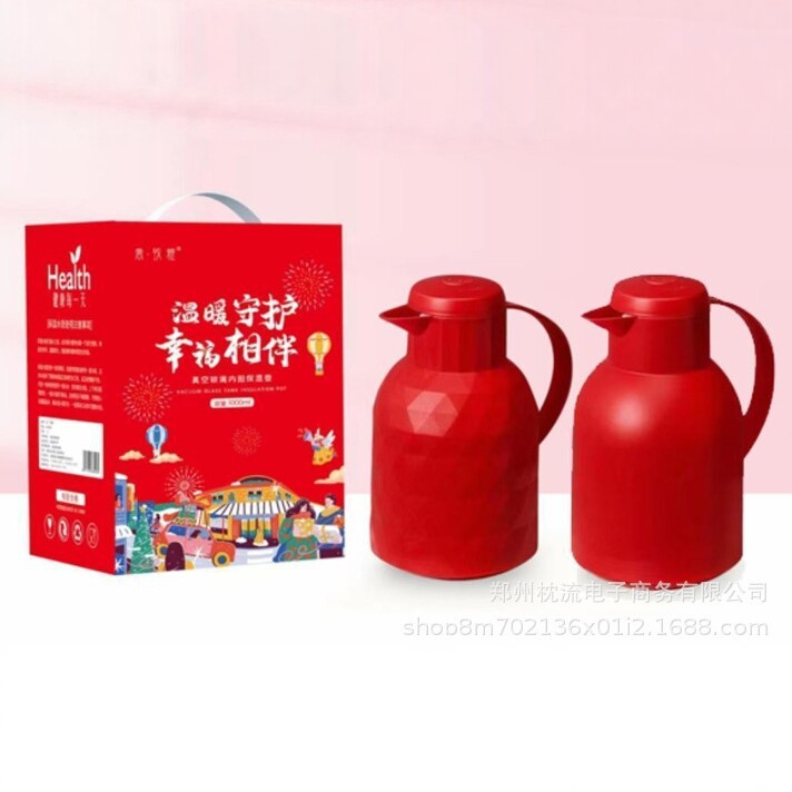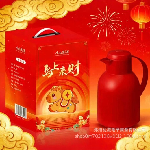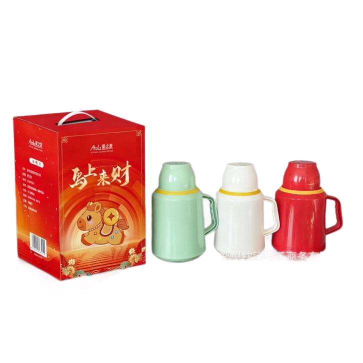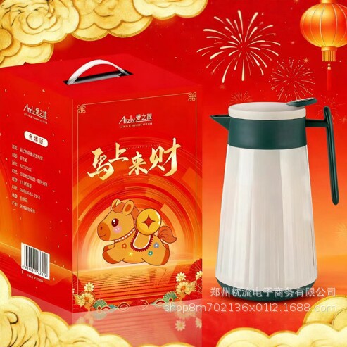 马上来财保温壶家用玻璃内胆1000ml礼盒装开业礼品批发