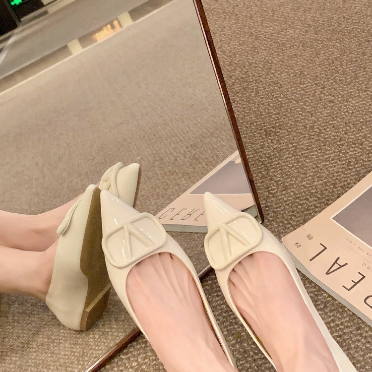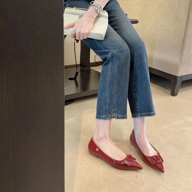 羊皮~葡萄ma同款一眼心动气质尖头靴子名媛风V扣通勤单鞋女平底鞋