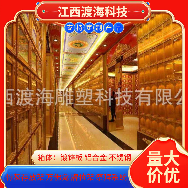 主营产品:骨灰存放架,骨灰盒寄存架,福寿架,万佛龛,牌位架,殡仪馆祭拜系统,寺院智能化管理系统、龙骨吊顶、智能骨灰寄存架