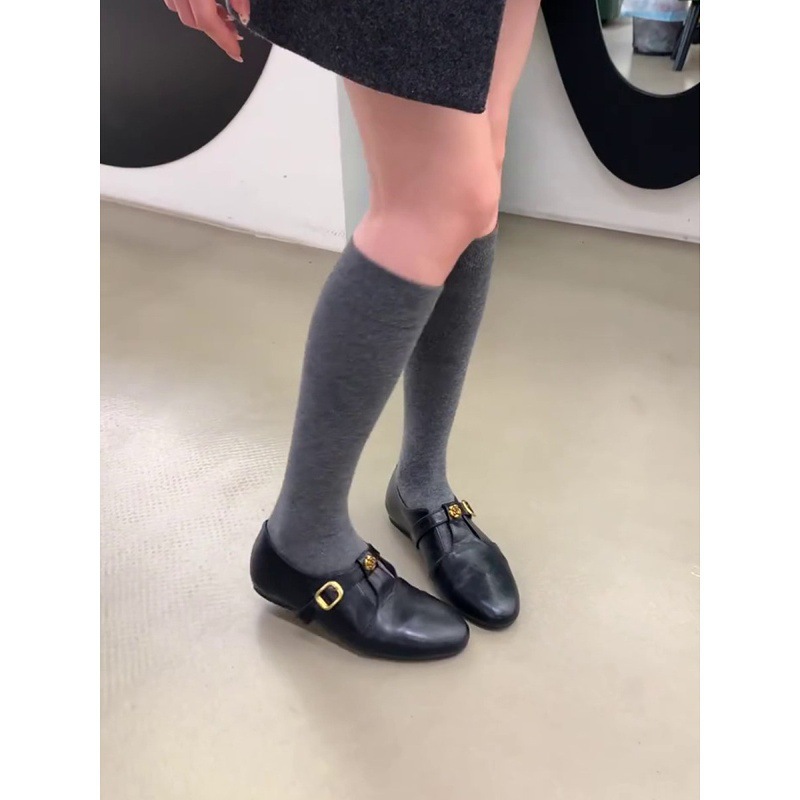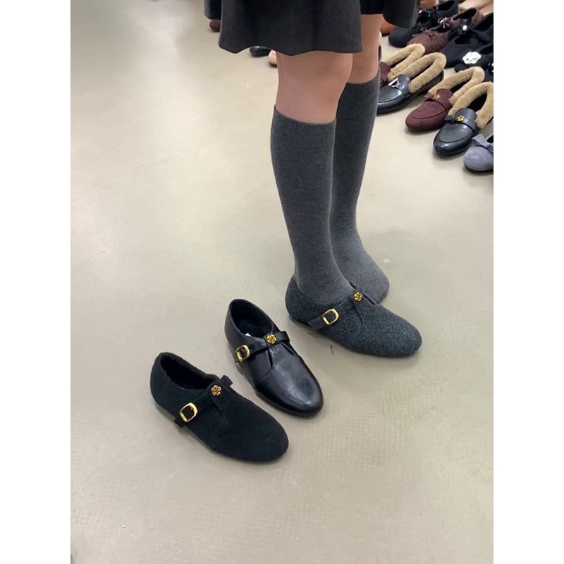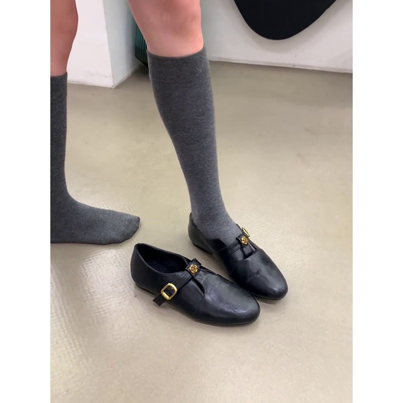 羊皮版~复古真皮山茶花乐福鞋女深口圆头玛丽珍单鞋内增高小皮鞋