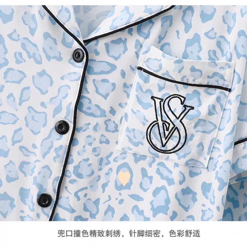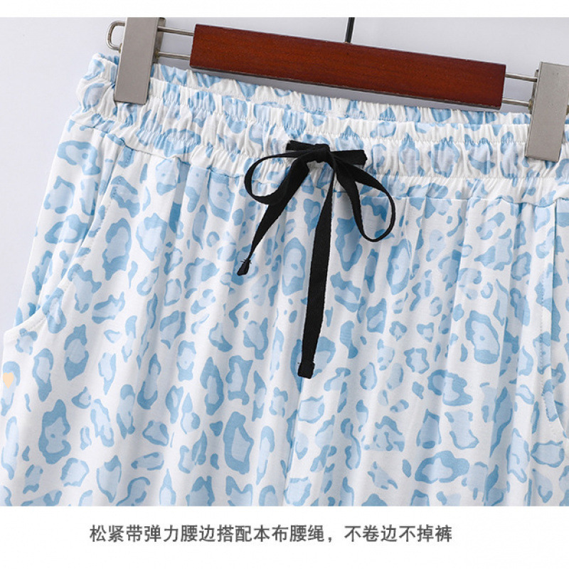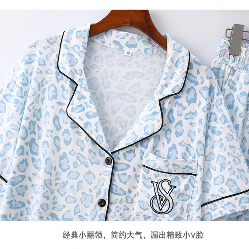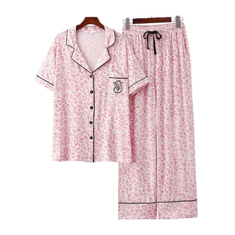 2025跨境外贸豹纹牛奶丝印花开衫翻领短袖长裤女士薄款家居服睡衣