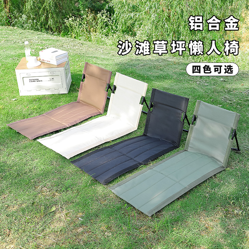 高个子户外折叠沙滩椅 一体式加长草坪靠背露营椅 地垫