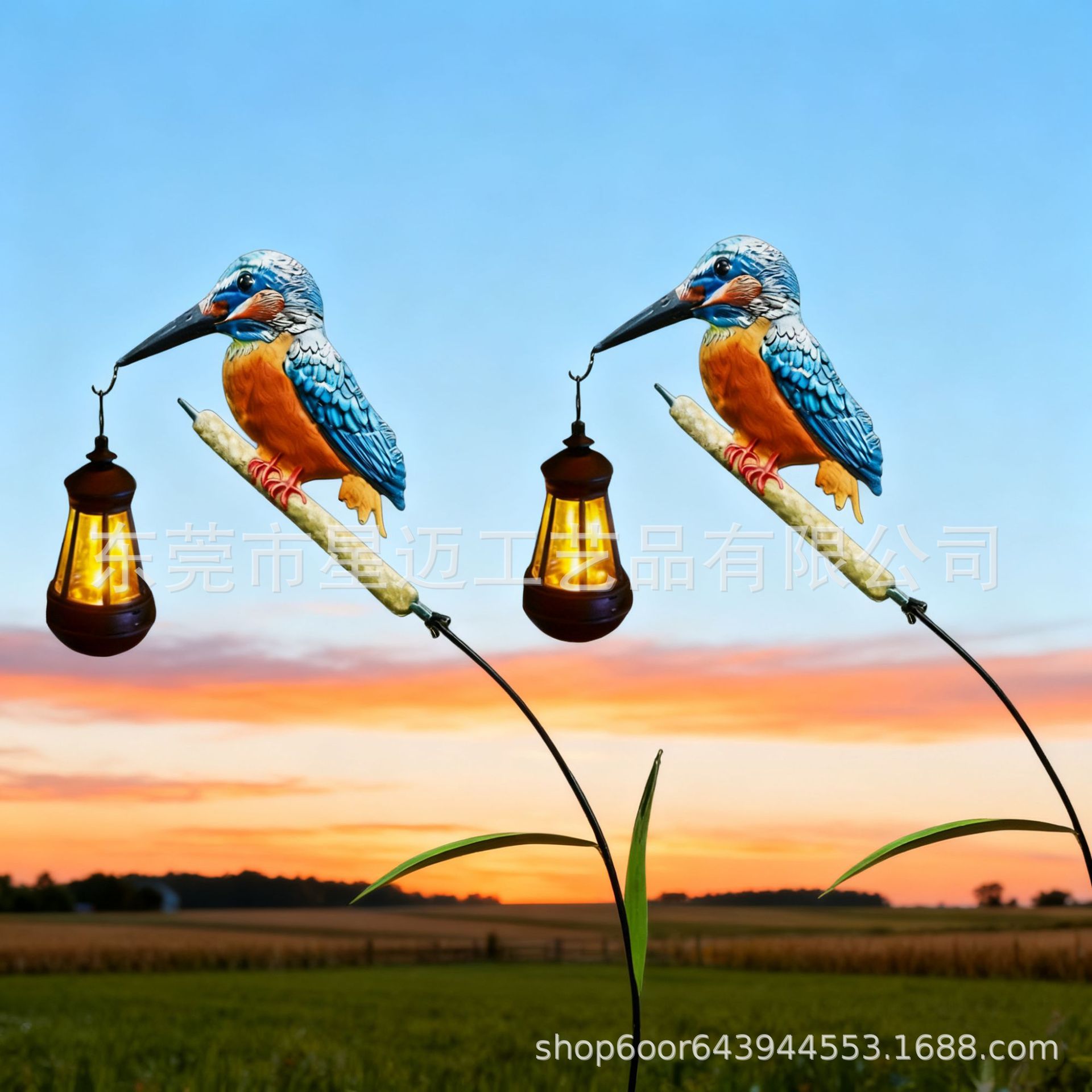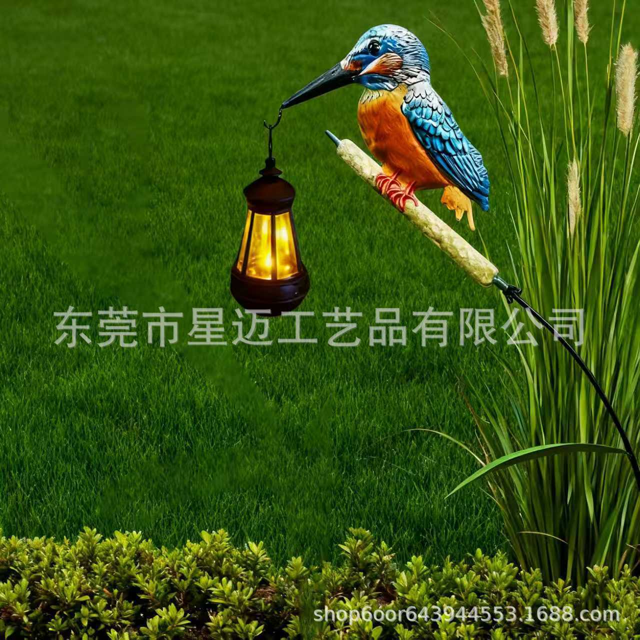 跨境新品户外花园装饰太阳能蓝雀鸟挂灯 小鸟提灯庭院摆件装饰