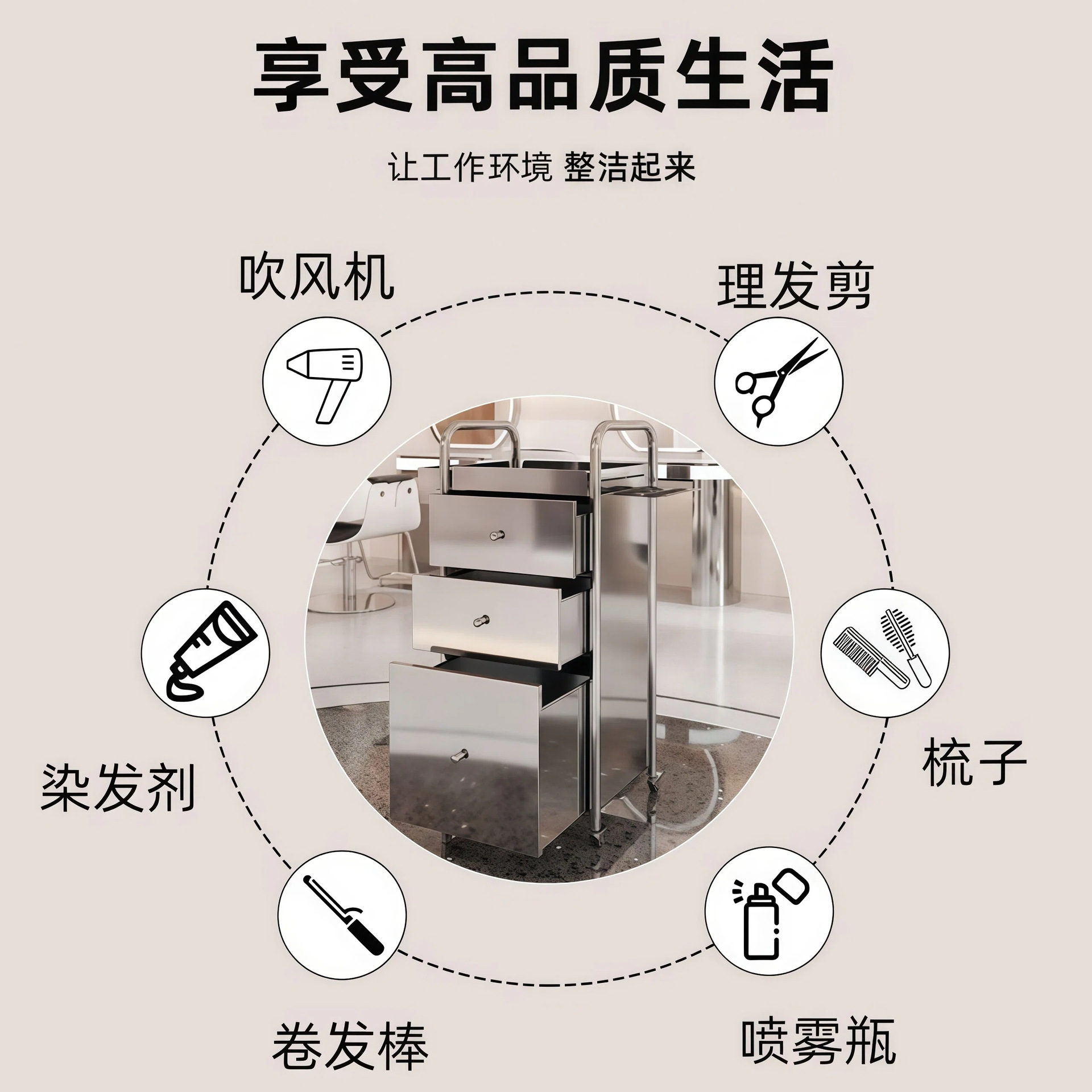 不锈钢理发店工具柜可移动带抽屉美发工具箱发廊专用工具台储物箱