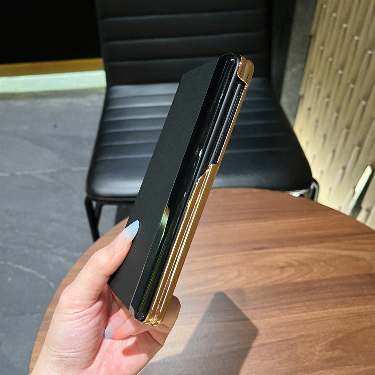 颜色【黑色】素皮电镀边-智能翻盖