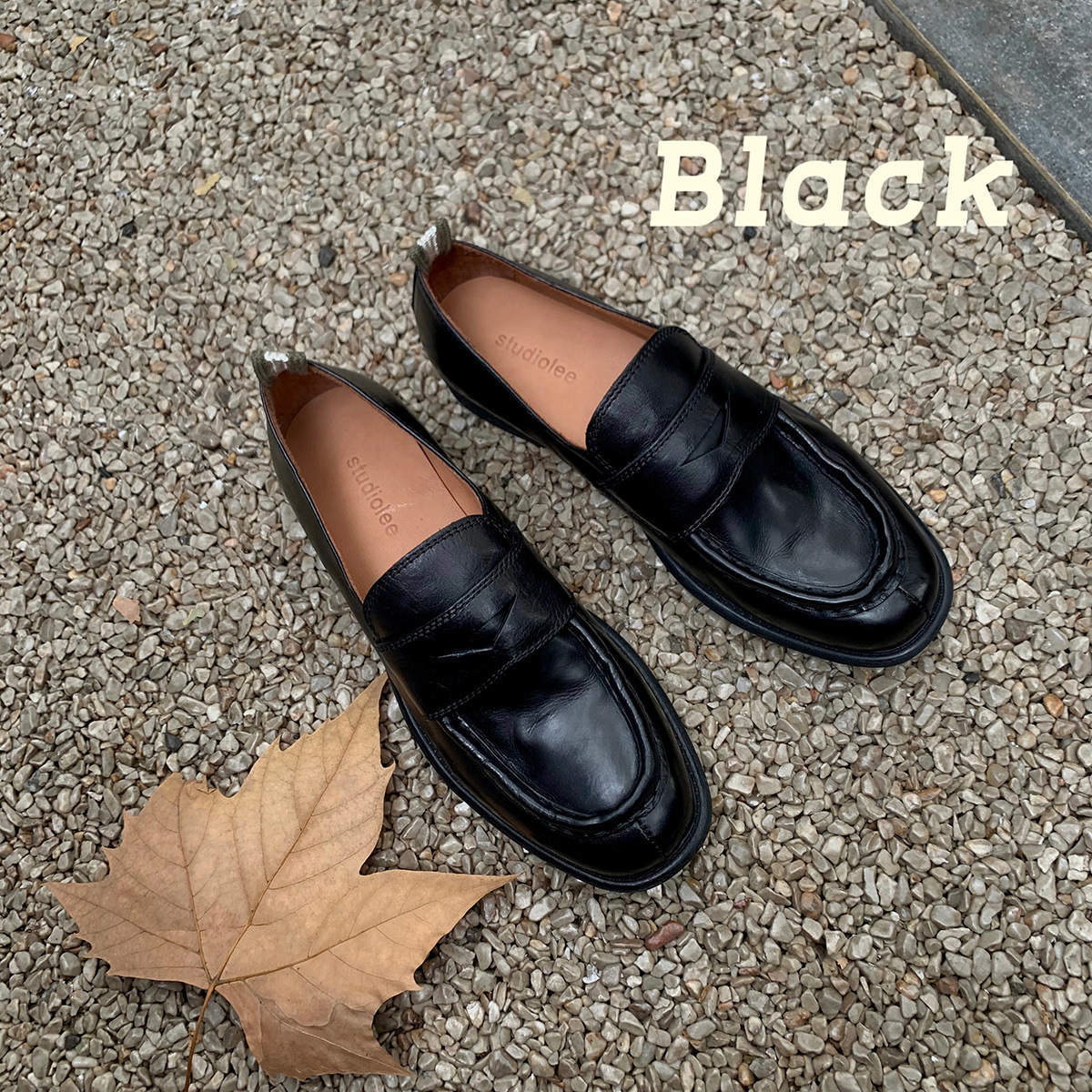 高级感牛皮版~葡萄ma同款厚底小皮鞋女英伦一脚蹬懒人真皮乐福鞋