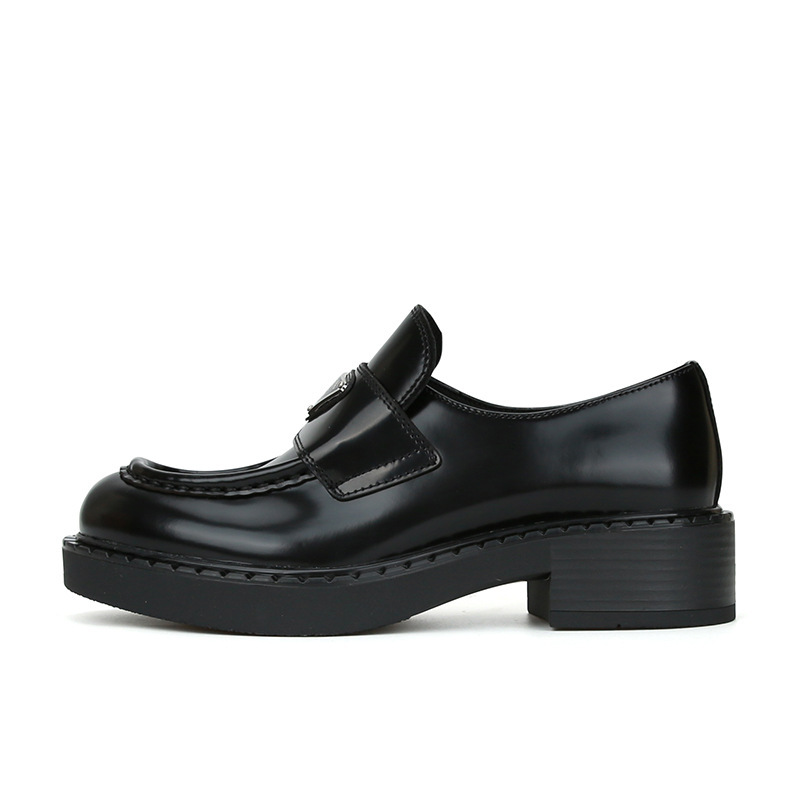 牛皮版~葡萄ma同款来咯来咯P家厚底粗跟真皮三角标乐福鞋女小皮鞋