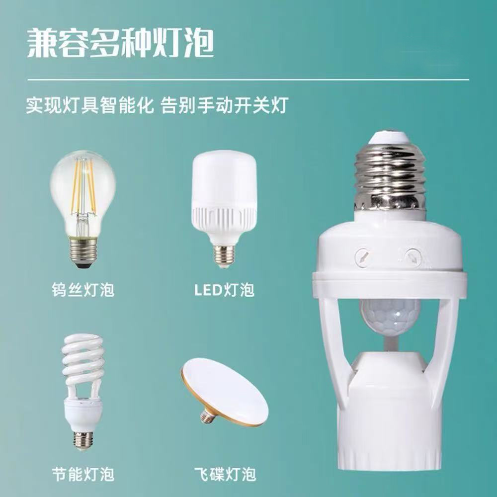 跨境红外线感应灯E27灯泡螺口人体红外感应灯头智能感应灯座灯具