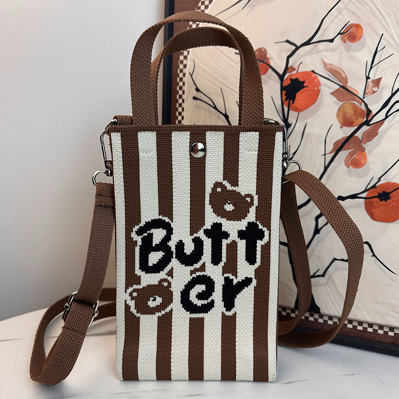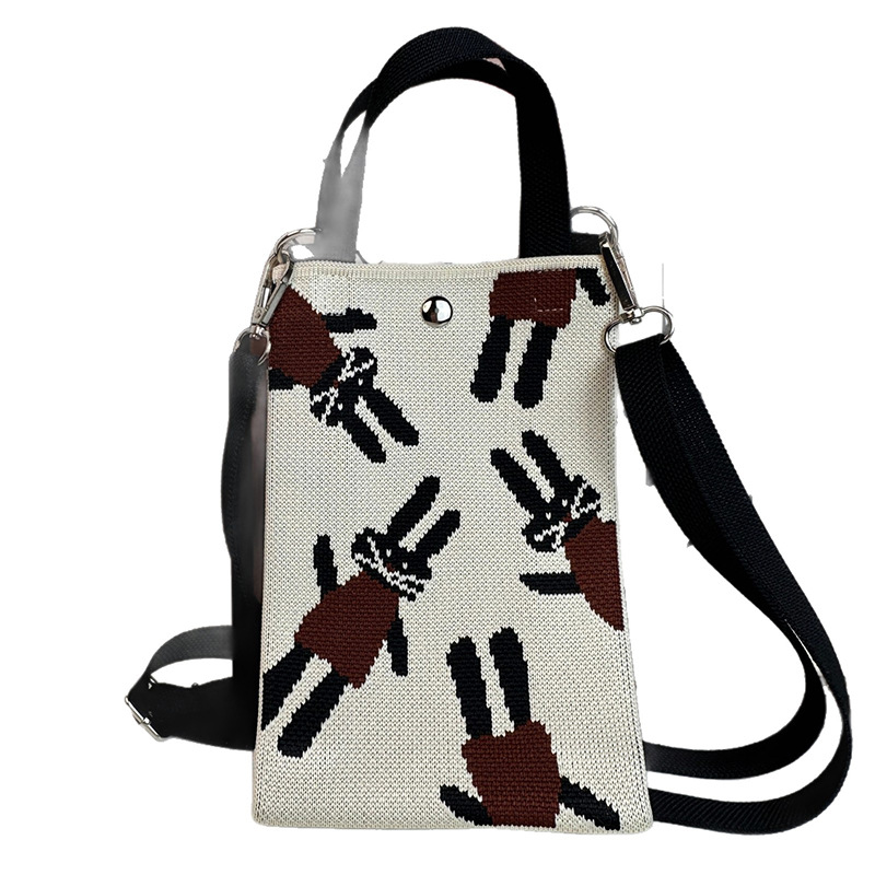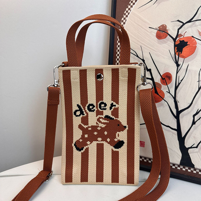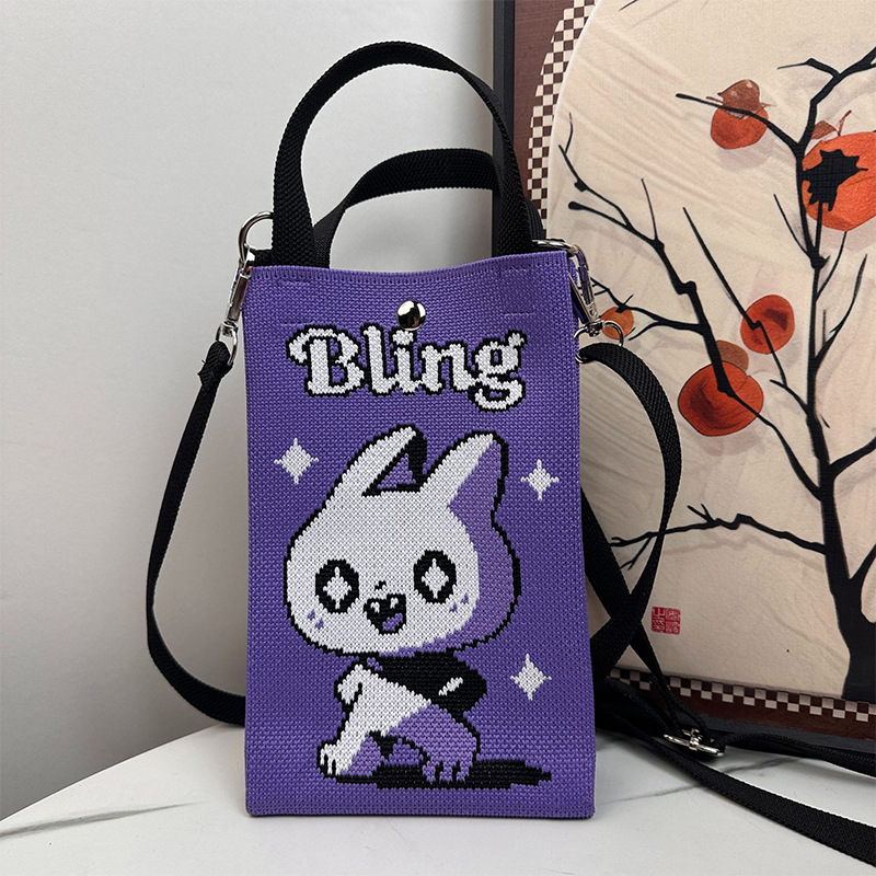 针织手提手机包新款便捷收纳学生可爱卡通斜挎包手拎便携随身