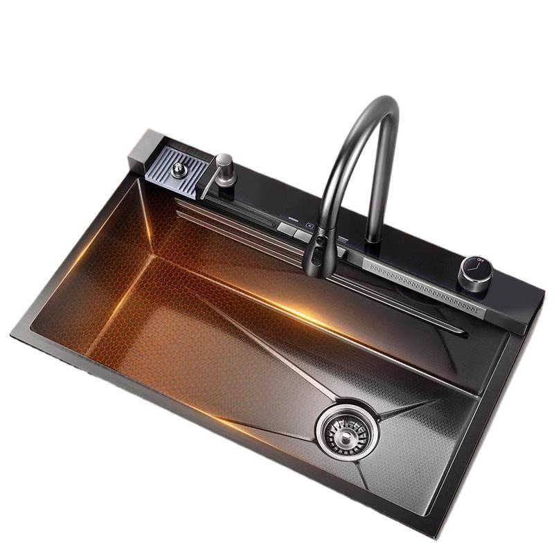 超厚鲸鱼双飞雨瀑布优质厨房家用蜂窝水槽大单槽不锈钢洗碗洗菜盆