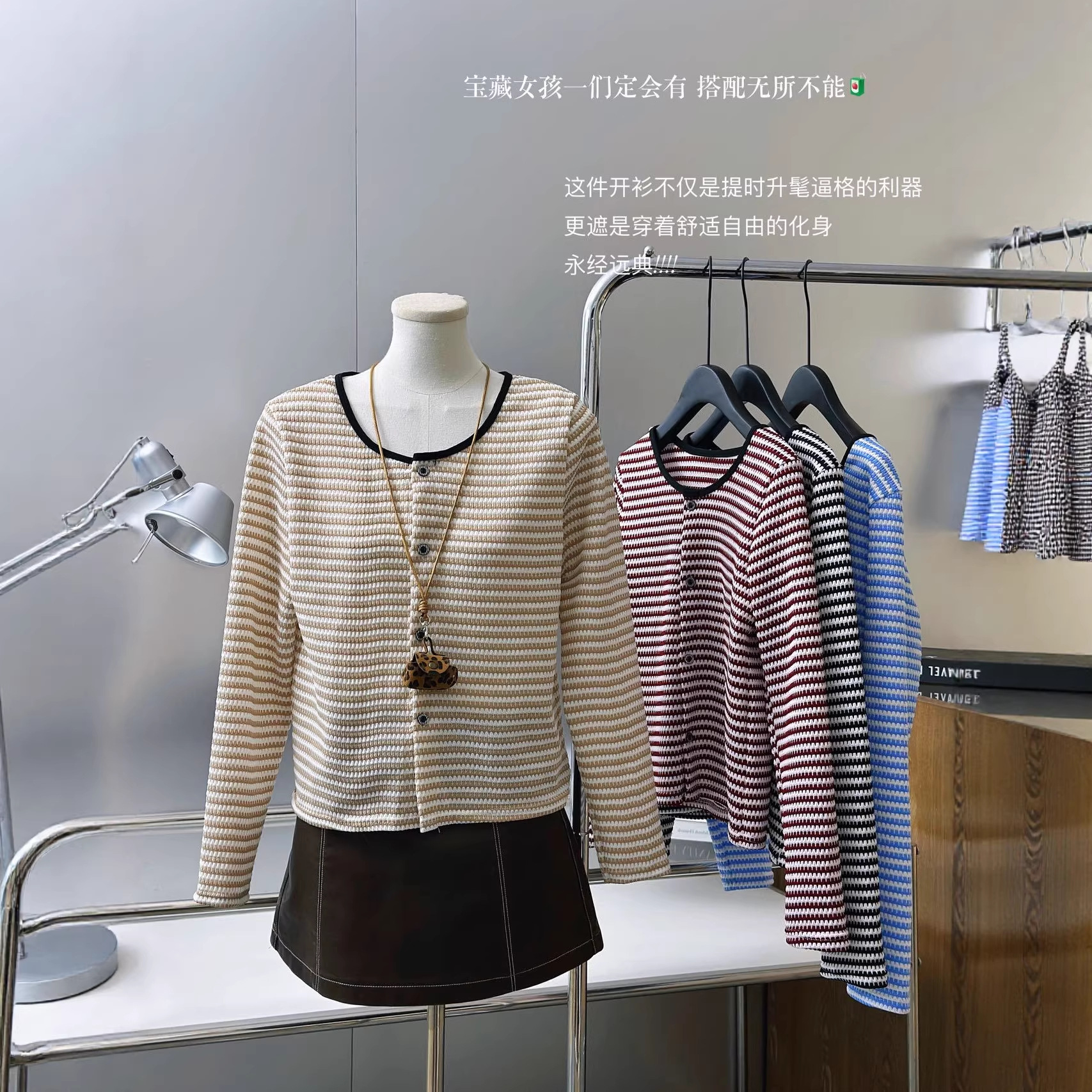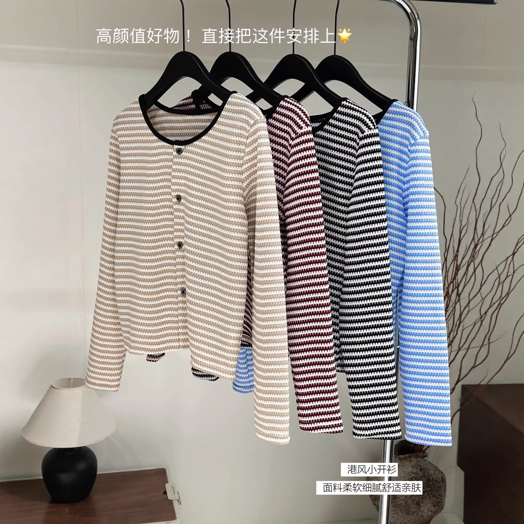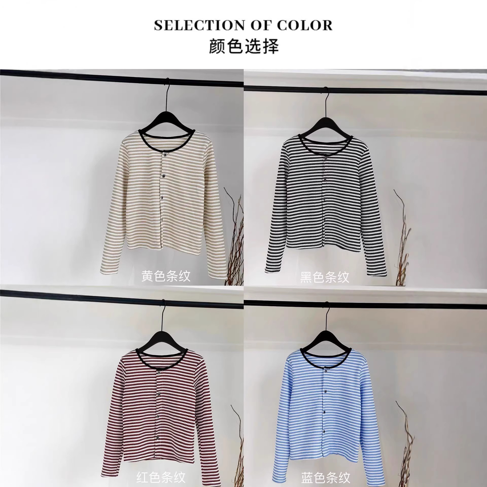韩版条纹长袖针织衫女秋2026春秋新款休闲简约百搭打底T恤上衣潮