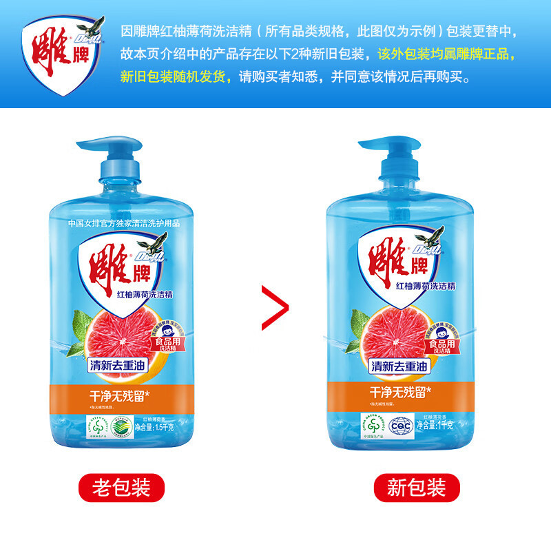 雕牌红柚薄荷洗洁精1kg瓶装厨房洗涤剂餐具洗碗液洗碗精洗洁剂
