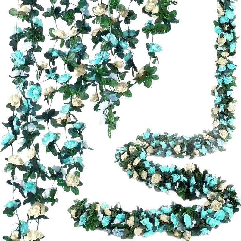 颜色春款45头玫瑰花藤—蓝白色