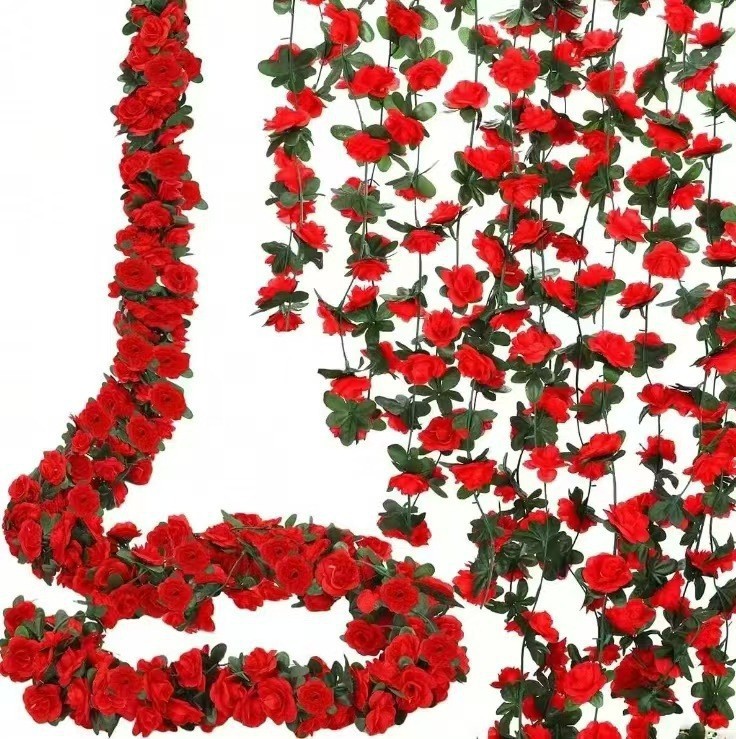 跨境藤条玫瑰花藤蔓壁挂婚庆牡丹吊顶家居装饰人造花藤装饰仿真花