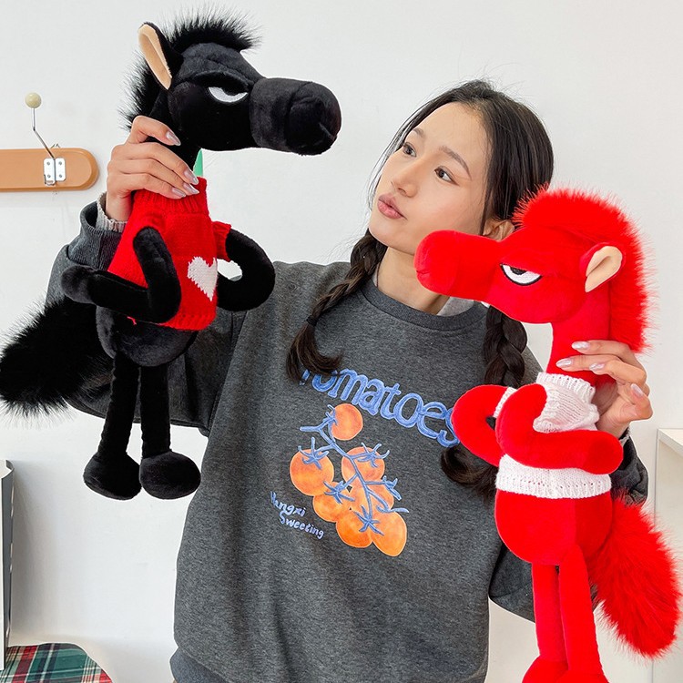 马年吉祥物天选高冷黑马毛绒玩偶2026新款拽马公仔公司活动礼品