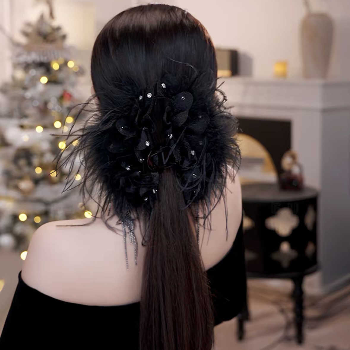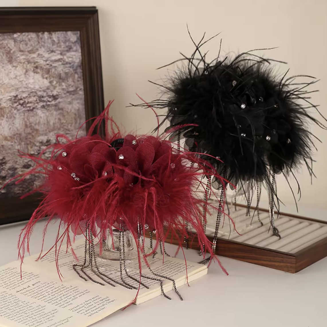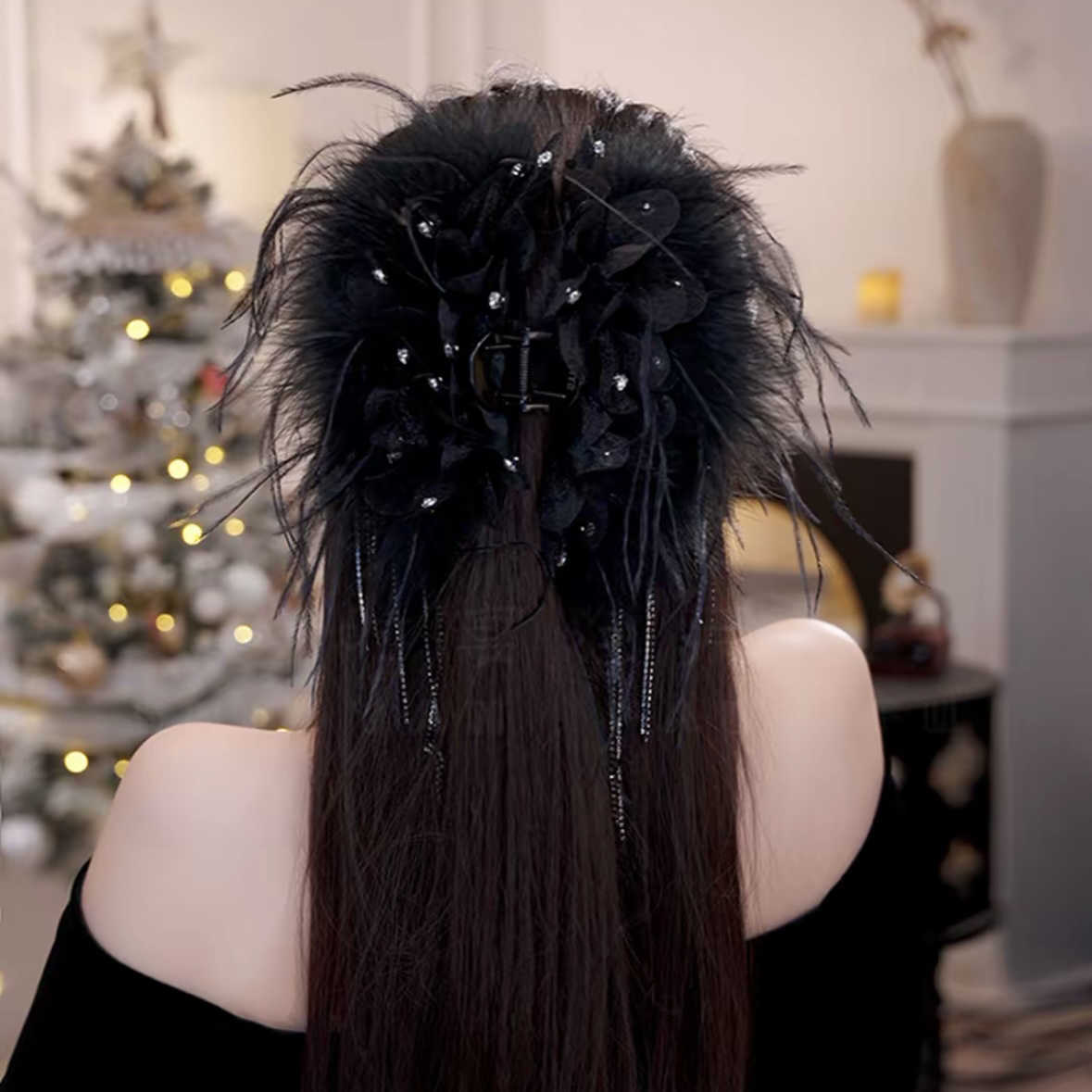 轻奢优雅风与潮流苏鲨鱼夹手工羽毛古风超仙发夹后脑勺气质抓夹女