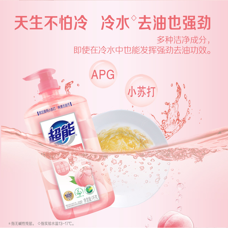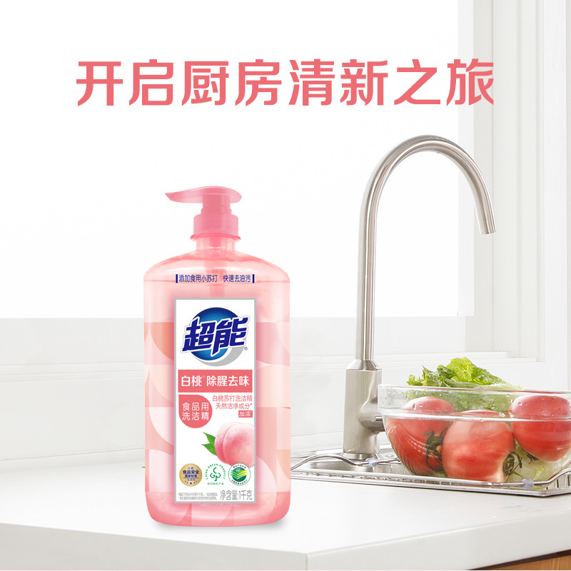 超能洗洁精白桃清新袪味大桶家用洗碗快速去油污洁净洗碗液食品用