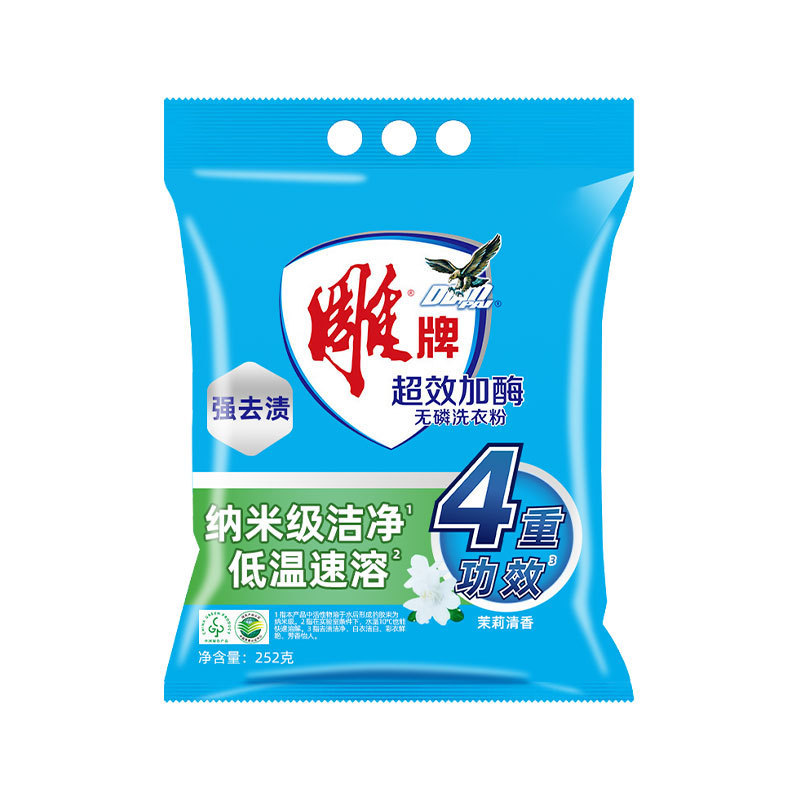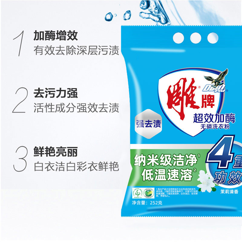 雕牌超效加酶洗衣粉252g袋深层去渍小袋装无磷茉莉清香小袋装实惠