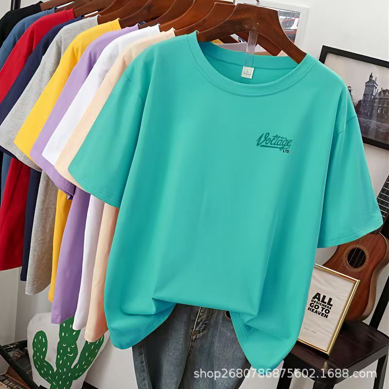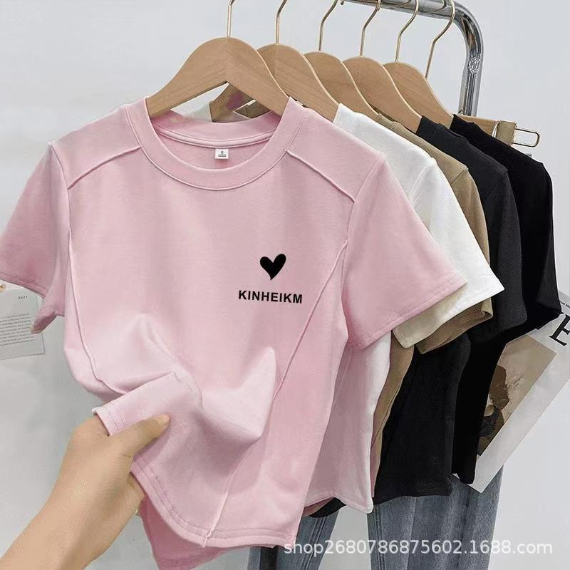韩国单正肩女装短袖t恤大版辣妹女士短袖T春夏新精棉修身显瘦体恤