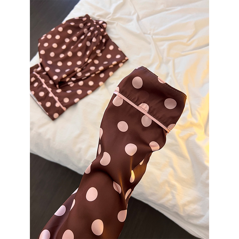 外贸爆款波点印花蕾丝冰丝睡衣女春秋季长袖长裤套装家居服可外穿